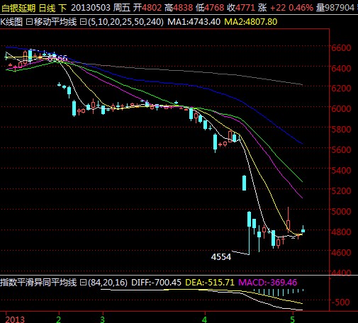 白银td开盘价4802,最高4838,最低4768,现价4771人民币。