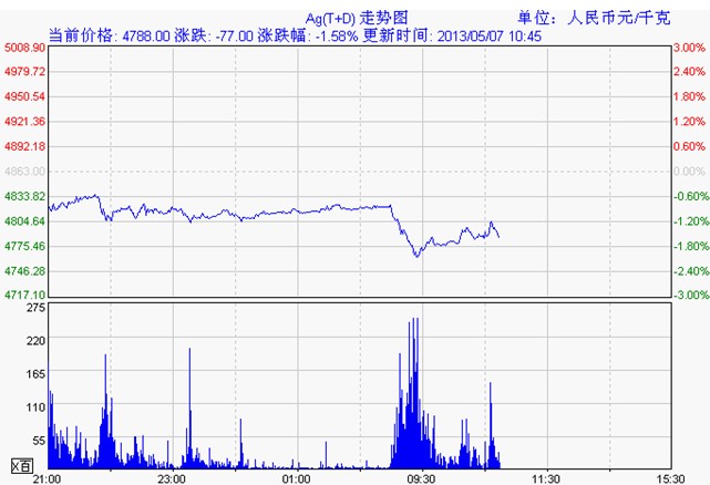 上海黄金交易所白银td走势图(5月7日)