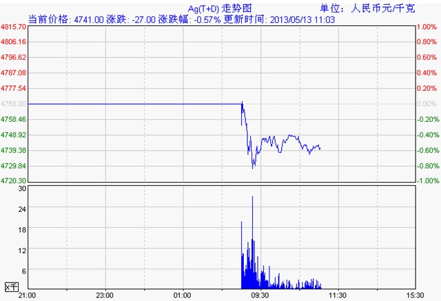 上海黄金交易所白银td走势图(5月13日)