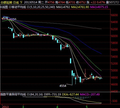 白银td开盘价4756,最高4764,最低4731,现价4752人民币。