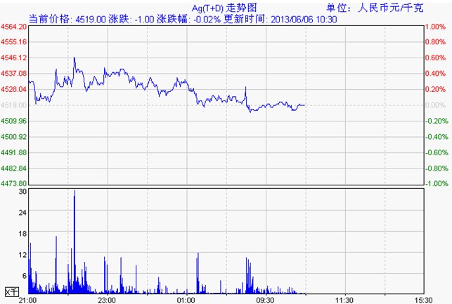 上海黄金交易所白银td震荡走低